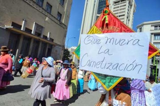 Gremiales marchan en contra de la carnetización en La Paz. /Foto: Jornada