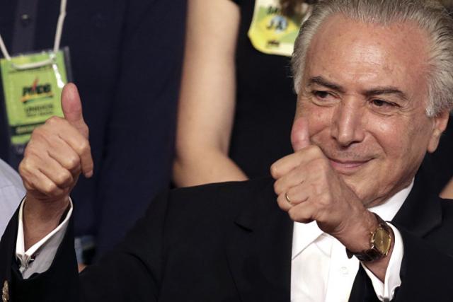 Michel Temer, del Partido del Movimiento Democrático de Brasil, asumió como presidente de Brasil en una ceremonia en el Senado, después de que Dilma Rousseff, la presidenta electa, fuera destituida por 61 votos.