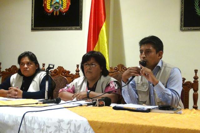 Vocales del Tribunal Electoral Departamental de Chuquisaca en conferencia de prensa. Foto (Archivo).