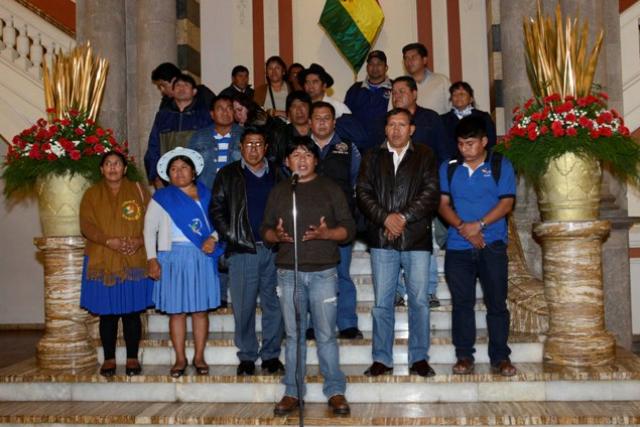 "Todas las organizaciones e instituciones sindicales y movimientos sociales, conjuntamente el Presidente y Vicepresidente reafirmamos una unidad para blindar y cuidar la democracia nacional, nuestra democracia boliviana, que nos ha costado sangre a través de varios mártires, nos ha costado recuperar esta democracia y nos ha costado recuperar nuestros recursos naturales", dijo el líder sindical.