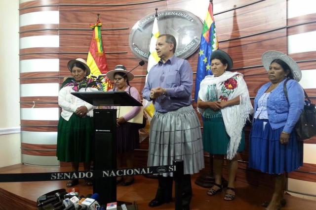 La Paz, 18 de diciembre (Oxígeno).- El presidente del Senado, Alberto Gonzales, dio una conferencia de prensa vestido con una pollera. Dice que lo hace en desagravio al mal uso de esa falda que es usada por las mujeres aymas y quechuas en el país.