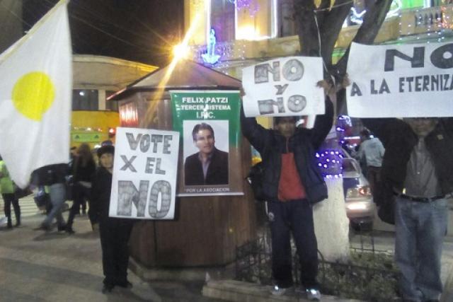 La Paz, 23 de diciembre (Oxígeno).- Con diversas actividades y al grito de “¡Tiranía No!” y “¡Patzi alternativa!”, militantes del Movimiento Tercer Sistema MTS, cuyo líder es el gobernador de La Paz, Félix Patzi, dieron inicio en las nueve ciudades capitales a la campaña “Por qué No” hacia el Referéndum Constitucional del 21 de febrero próximo para una posible tercera reelección del Presidente y Vicepresidente.