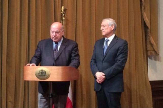 El agente de ese país ante La Haya, José Miguel Insulza, y el canciller de Chile, Heraldo Muñoz, hoy en conferencia (Foto: Cancillería de Chile)