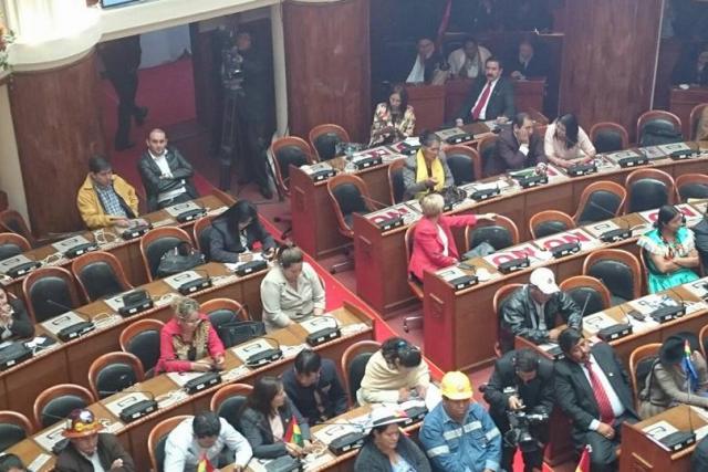 La Paz, 22 de enero (Oxígeno).- Legisladores de oposición abandonaron el Hemiciclo de la Asamblea Legislativa y no terminaron de escuchar el informe de los 10 años de gestión del presidente Evo Morales que duró 5 horas con 47 minutos. Por su parte el vicepresidente Álvaro García Linera lamentó que la derecha no tenga un proyecto de país.