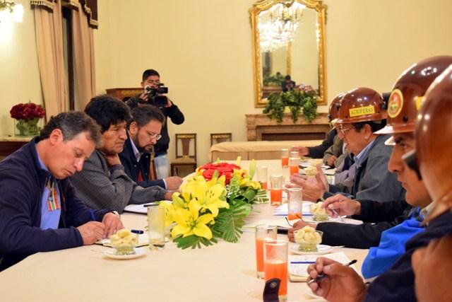 Morales comenzó sus labores este sábado con una reunión con dirigentes de la Federación de Cooperativas Mineras Auríferas del Norte de La Paz (Fedecoman) a las 05.00. Luego, recibió a representantes de las iglesias evangélicas.