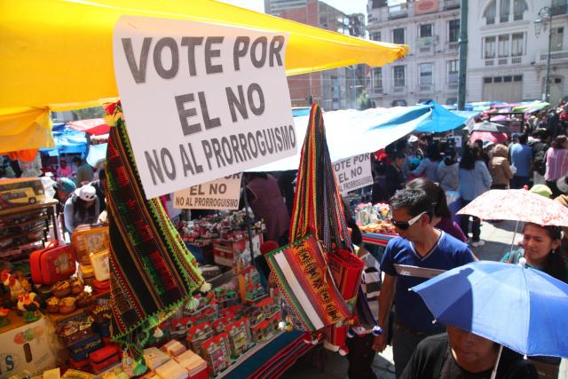 “Vote por el No al prorroguismo”, ese fue el mensaje que los paceños que visitaron a la feria leían a su paso.