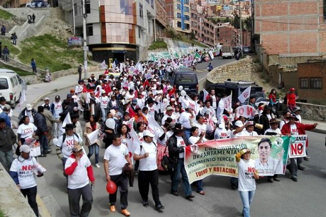 La Paz, 13 de febrero (Oxígeno).- En una extensa caminata, desde la Ceja de El Alto hasta la Plaza del Bicentenario de la ciudad de La Paz, el Movimiento Tercer Sistema, liderado por el gobernador paceño, Félix Patzi, dio inicio a la etapa del cierre de campaña por el NO, cuyas actividades concluirán el miércoles 17 de este mes.