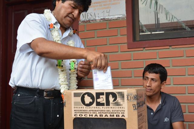 La Paz, 21 de febrero (Oxígeno).- El  presidente del Estado Plurinacional, Evo Morales, emitió su voto en la mesa 14 de la de la unidad educativa Villa 14 de Septiembre a las 8:40,  y dijo que hoy el pueblo define si  “lo quiere o no lo quiere”.