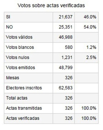 Actas verificadas al 100%: Pando rechazó la reforma constitucional con el 54%