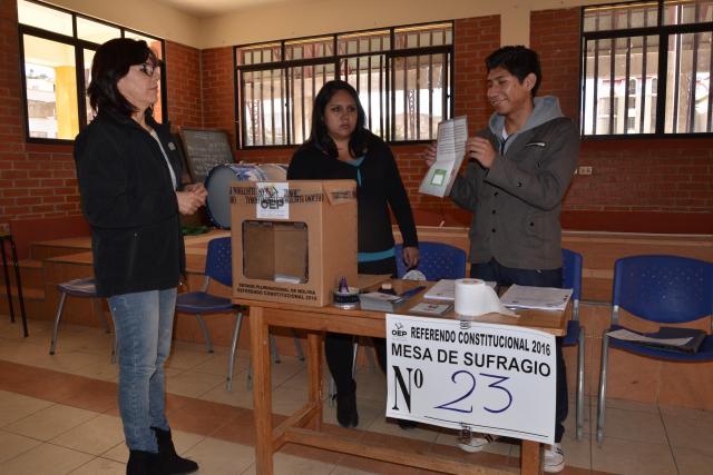 En Viacha, el Sí a la modificación de la Constitución Política del Estado (CPE) ganó con 73 votos, mientras que el No, obtuvo sólo 8 votos.