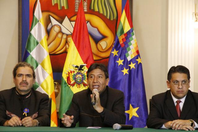 El canciller David Choquehuanca en la rueda de prensa que se realizó hoy. Foto: ABI