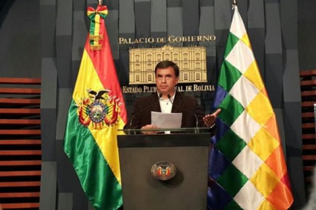 El ministro de la Presidencia, Juan Ramón Quintana en rueda de Prensa.