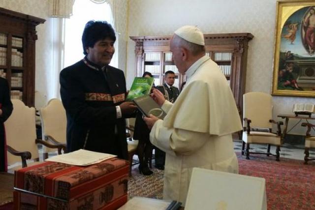 El presidente de Bolivia, Evo Morales, se reunió hoy con el Papa Francisco, en el Vaticano, y le recomendó consumir hoja de coca porque dijo: "Así aguanta toda la vida”. El encuentro duró 27 minutos y se desarrolló en la Biblioteca del Palacio Apostólico del Vaticano, según informó El País de España.