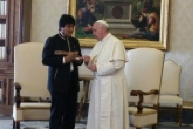 El presidente Morales llegó al Vaticano el jueves, el Papa Francisco lo recibió el viernes en una audiencia privada. En un comunicado, la Santa Sede informó que “durante las conversaciones, transcurridas en una atmósfera de cordialidad, se trataron algunos temas concernientes a la actual coyuntura socio-económica del país, considerando especialmente las políticas sociales”.