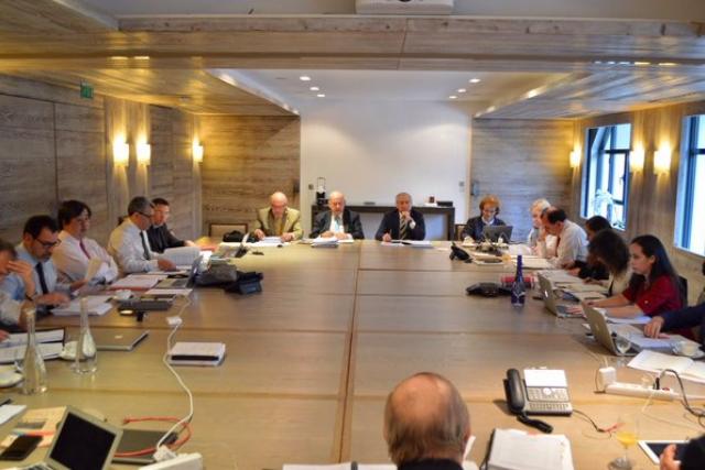 El canciller Heraldo Muñoz, el agente Miguel Insulza y el equipo de abogados que preparan la contramemoria que Chile debe presentar ante la Corte de Justicia de La Haya, trabajan por segundo día en París; Muñoz informó que el documento se presentará antes del 25 de julio.