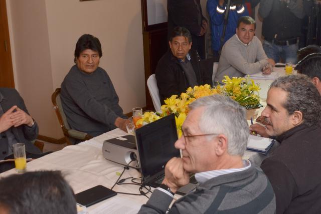 El Consejo de Defensa del Silala se reunió esta mañana para analizar la demanda presentada por Chile, participaron el agente ante la Corte Internacional de Justicia de La Haya, el expresidente Eduardo Rodríguez Veltzé, el presidente Morales, el vicepresidentes y altas autoridades de Estado.