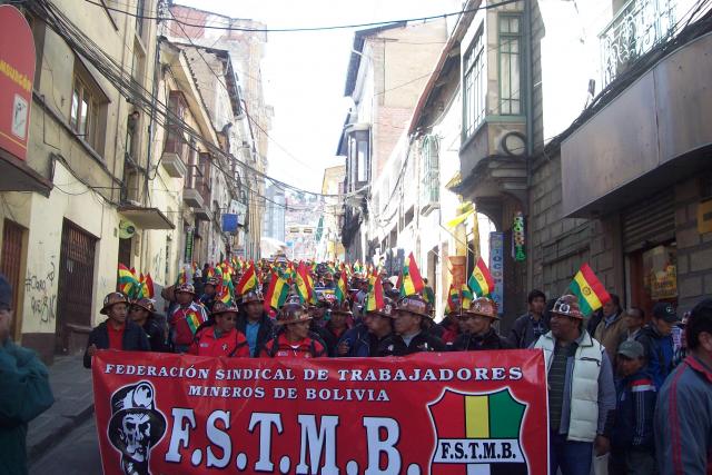 Los mineros en las protestas convocada por la COB. Foto: Oxígeno.bo