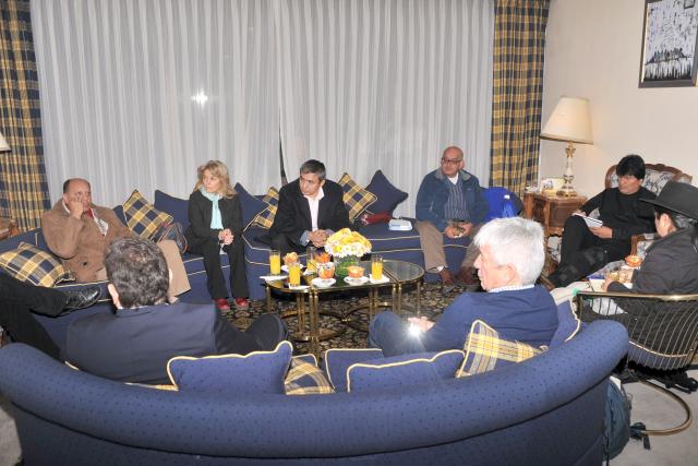 El presidente Evo Morales y representantes de los medios de comunicación se reunieron este sábado muy temprano en la residencia presidencial y acordaron estudiar el tema de adjudicación de frecuencias.