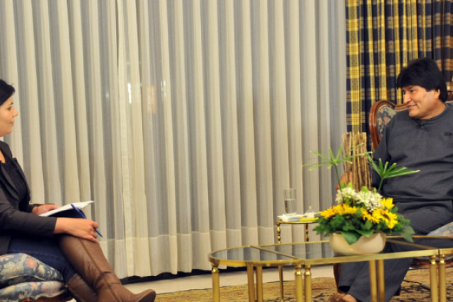 El presidente Evo Morales durante la entrevista , ayer. Foto: AbyaYala