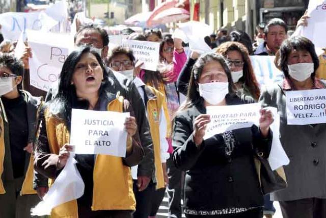 La alcaldesa de El Alto, Soledad Chapetón, dirigió una marcha pacífica que pedía la libertad de cuatro funcionarios ediles detenidos en la investigación por la quema de la Alcaldía que ocurrió el 17 de febrero de este año, en la que murieron 6 personas.