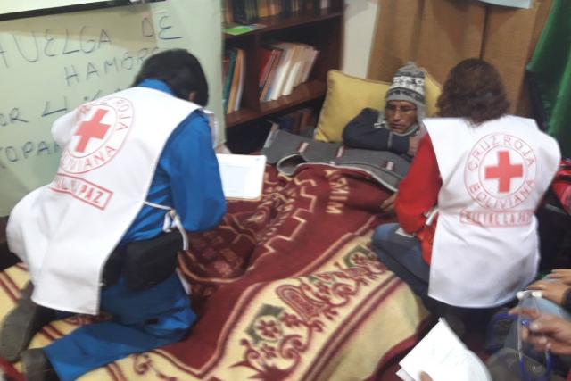 Médicos de la Cruz Roja revisan al gobernador Félix Patzi. Foto: LuisReports24