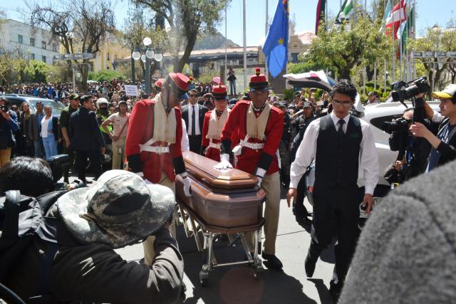 Colorados de Bolivia ingresan el cuerpo de Illanes al Palacio de gobierno. Foto: ABI
