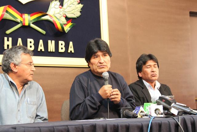 El presidente Evo Morales ofreció una conferencia de prensa en la Gobernación de Cochabamba, en la que afirmó que su Gobierno derrotó un nuevo intento de golpe de Estado, al terminar el conflicto con los cooperativistas mineros.