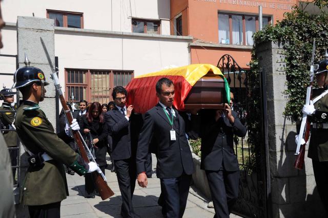 El velatorio fue trasladado el sábado al Ministerio de Gobierno donde recibió el homenaje del ministro de Gobierno, Carlos Romero, y fue escoltado por una guardia de honor de cadetes de la Academia Nacional de Policías (Anapol).