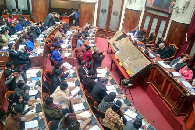 La diputada de Unidad Demócrata (UD), Jimena Costa, anunció que la bancada de oposición decidió replegarse, asistirán a la sesión pero se retirarán. “Nos vamos a replegar a la antesala o a tomar un cafecito mientras se produce el show”, dijo Costa a los medios .