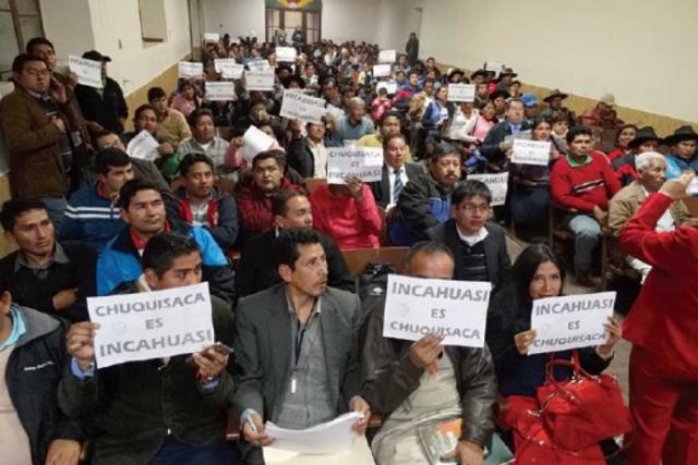 Los chuquisaqueños protestaron con carteles que decían: “Chuquisaca presente. Incahuasi es campo compartido”.