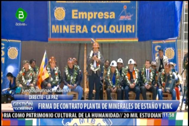 Firmaron el contrato para la constucción de la Planta de Minerales de estaño y zinc en Colquiri. La firma inicia la construcción de la planta y de la rampa blanca norte en este centro minero. Se plantea que una vez terminada, en tres años, la Empresa Minera Colquiri (EMC), producirá utilidades por encima de los 40 millones de dólares.