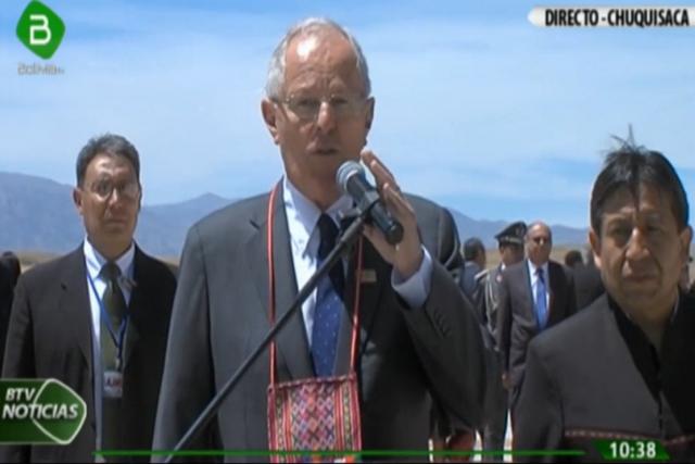 Kuczynski llegó a Sucre para firmar un acuerdo de integración con Bolivia