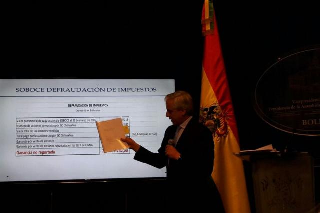"Según los estados financieros del año 2005, a pocos meses de haber vendido a Cementos Chihuahua sus acciones, reportan que la ganancia por venta de acciones son 80 millones, pero en verdad la ganancia era 297 millones de bolivianoo”, aseguró.