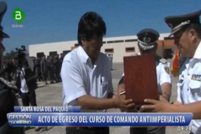 156 oficiales de las Fuerzas Armadas se graduaron de la Escuela de Comando de Antiimperialista, ubicada en Warnes, Santa Cruz. El presidente Morales participó en el evento y destacó que las Fuerzas Armadas de Bolivia ya no dependen de la CIA y la DEA.