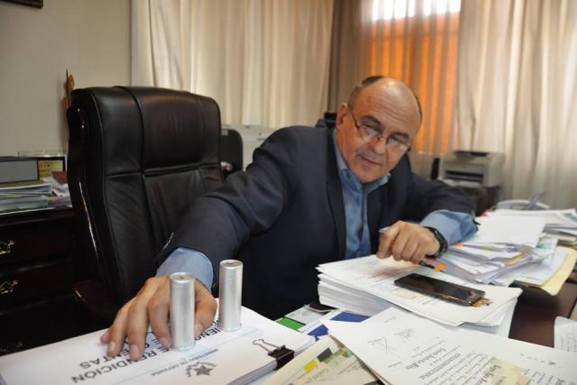 El ministro de Defensa, Reymi Ferreira muestra los cartuchos de yoduro de plata. Foto: Min. de Defensa.