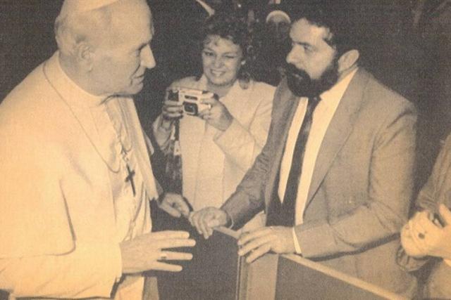 Marisa toma una fotografía cuando Lula conoce al Papa Juan Pablo II en la década del 80.