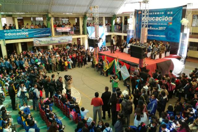 El ministro Aguilar inaugura el año escolar en Oruro