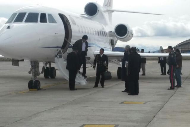 El Presidente llegó hoy en la tarde en el avión presidencial. Foto: ABI.