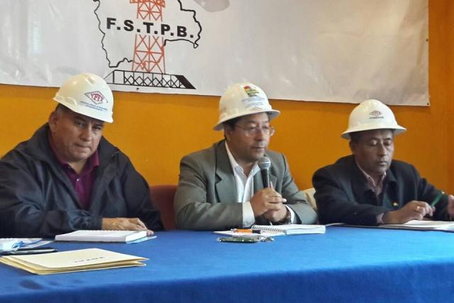 El ministro de Economía, Lui Arce, acudió a la Federación Sindical de Trabajadores Petroleros de Bolivia para asegurarles que recibirán el incremento salarial del 7%, a pesar del decrecimiento del sector de hidrocarburos. Los trabajadores que se habían declarado en alerta, terminaron destacando la labor del ministro en el manejo de la economía.