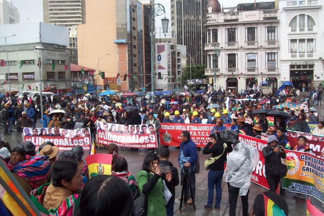Las declaraciones las hicieron en el marco de la marcha en apoyo de los 9 detenidos que realizaron hoy varias organizaciones sociales. La movilización partió esta mañana del Multifuncional de El Alto y llegó a la plaza de San Francisco alrededor de medio día. Los participantes pidieron la liberación de los 9 funcionarios y llamaron a la diplomacia de los pueblos para solucionar el conflicto.