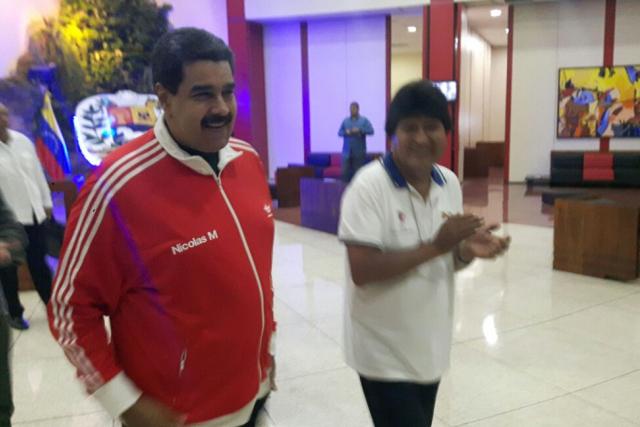 Morales visitó Venezuela, donde le aseguró al presidente Maduro: "Si algo pasa en Venezuela están todos los pueblos de América Latina para defender esta revolución".