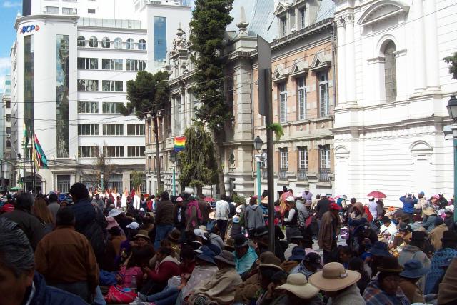 El sector gremial realizó hoy una marcha y bloqueo de calles en la ciudad contra la carnetización que propone el Gobierno Municipal de La Paz (GAMLP), piden audiencia con el Alcalde. Por su parte la Unidad de Mercados señala que el sector tiene información falsa.