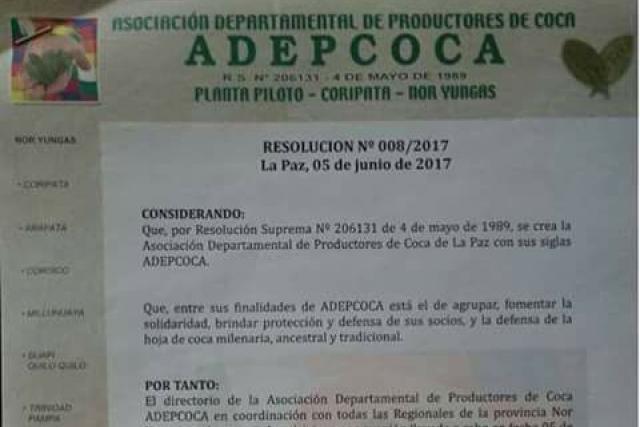 Esta mañana, Cocarico señaló que la declaratoria de él como persona no grata salía de la dirigencia de Adepcoca y no de las bases con las cuales tiene buena relación. Aseguró que la socialización y la reglamentación se hacen con las comunidades y a pedido de éstas. Y dijo que sólo 6 de las 16 regionales habían firmado el documento.