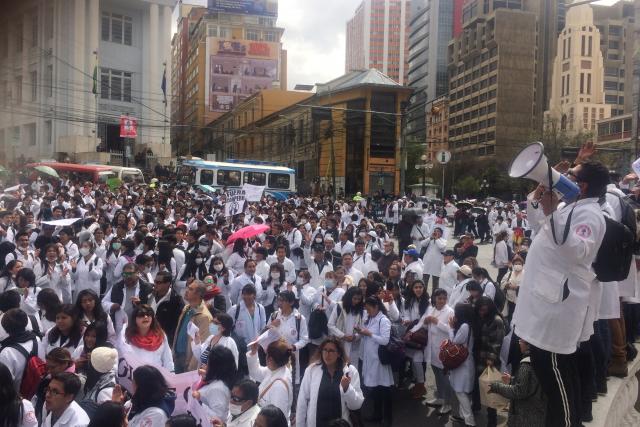 En horas de la mañana una marcha de mandiles blancos recorrió las calles de la ciudad de La Paz desde Miraflores hasta las puertas del Ministerio de Salud en la plaza del Estudiante. Piden la anulación de los decretos supremos 3091 y 3092 y una política nacional de salud.
