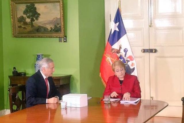 La Presidenta Michelle Bachelet recibió una copia de la memoria en el Salón del Palacio de La Moneda, entregada por el canciller, Heraldo Muñoz.