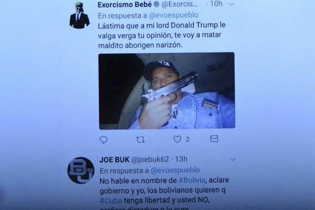 "¡Evo cuídate, estás muerto!!!” de Saimon y “Lástima que a mi Lord Donald Trump le valga v... tu opinión, te voy a matar maldito aborigen narizón” de Exorcismo Bebé.