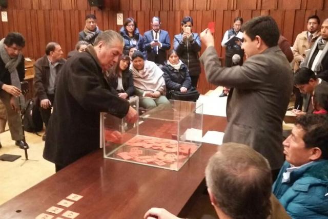 La prueba inició a las 8:45, luego del sorteo de preguntas a los postulantes. En total se sortearon 120 preguntas, 60 para el Tribunal Agroambiental y 60 para el Consejo de la Magistratura. La prueba consiste en 20 preguntas generales y 40 específicas.