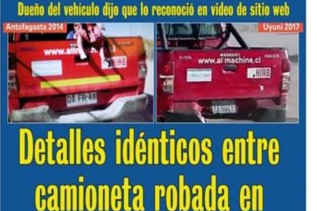 La prensa chilena ha informado sobre la denuncia. "Estamos 100% seguros de que es la camioneta; lo único que no tiene son obviamente las placas patente", dijo el asesor jurídico de la compañía chilena, Patricio Vargas, al diario El Mercurio.