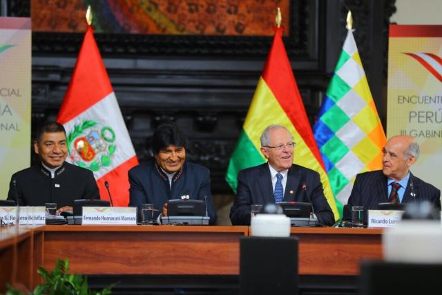 El presidente Morales se reunió este viernes con el primer mandatario de Perú, Pedro Pablo Kuczynski. Luego del encuentro ambas autoridades inauguraron el III Gabinete Binacional que se desarrolla en Lima. Se tiene previsto tratar ejes temáticos que incluyen el tren bioceánico y la habilitación del puerto de Ilo.