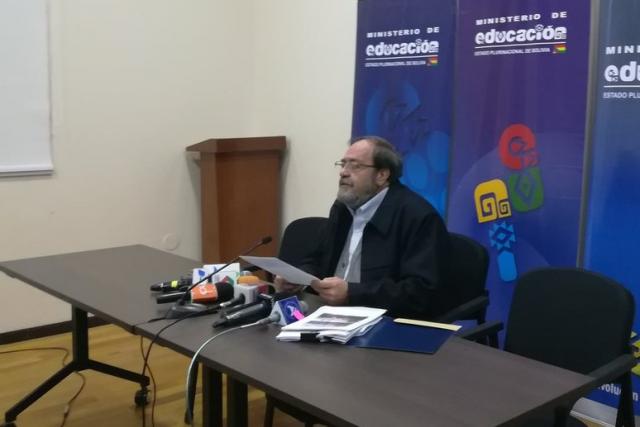 Aguilar en su encuentro con la prensa. Foto: Min. Educación.